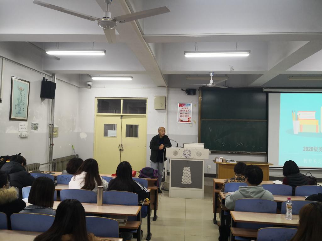 2021年11月15日8:30,bevictor韦德国际在综合楼118召开了2020级英语专业教育见习动员大会。bevictor韦德国际崔海英经理、罗学锋副经理、范学荣副经理、英语教学部主任王静、宋洁、部分指导教师以及2020级131位同学参加了本次大会。