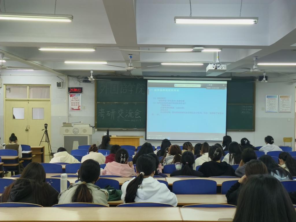 10月19日下午14点,bevictor韦德国际英语教学部在综合楼212举办了2023年考研经验交流会,旨在帮助员工了解研究生入学考试备考的过程。与会人员为英语专业2021和2022级员工。