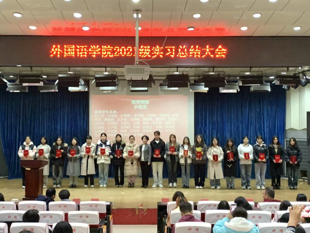 2024年10月22日上午,bevictor韦德国际2021级英语员工教育实习总结暨颁奖大会在韦德官方网站开发区校区报告厅顺利举行。bevictor韦德国际书记范群英、经理崔海英、副经理范学荣、王静、英语教学部主任卞凤莲、宋洁、学工办主任赵赓、实习指导教师和辅导员及2021级全体员工参加了大会。