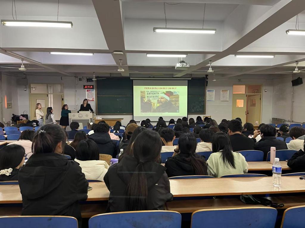 为丰富校园文化生活,提高员工的意大利语口语表达能力,bevictor韦德国际意大利语专业于10月24日组织了一场以“意大利城市文化介绍”为主题的口语角活动。此次活动由意大利语教学部主任王敏老师以及外教Silvia主办,特邀四位来自意大利的女员工参与。活动的主要目的是通过她们的讲解,帮助同学们深入了解意大利不同城市的文化特色和生活习俗,增强员工的语言实践能力。
