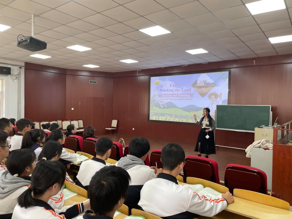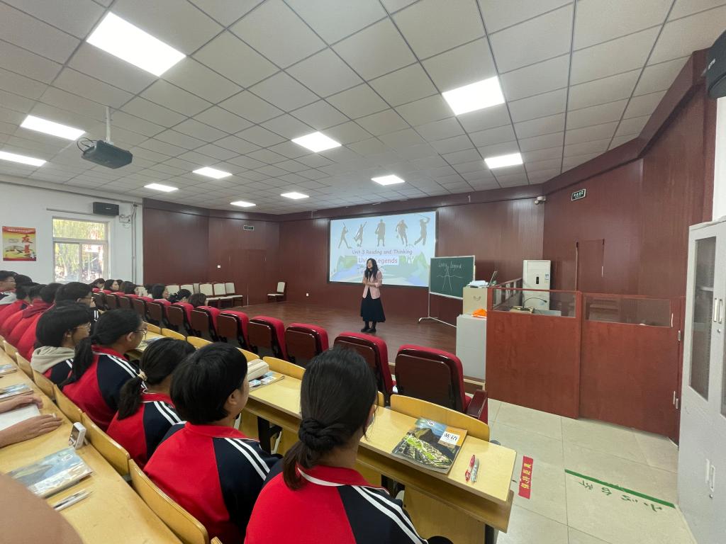 见习团队首先参观了校园及教学楼的文化建设。主教学楼门廊内外展示了附中莘莘学子的风采,敬学楼浮雕门刻着“为中华之崛起而读书”的字样,时刻激励着青年奋进向前。其次,观摩了田宇和刘新颖两位老师的英语公开课。田老师讲授的是高一年级题目为“Living Legends”的英语阅读课,授课过程设计合理各个关节紧密相扣又融合了课程思政理念。刘老师所教的是高二年级的英语课,她结合自己的班主任工作经验呈现了一节高效的知识性互动性相融合的示范课,通过介绍袁隆平“Working the Land”为杂交水稻奉献一生的事迹提升员工用英语讲授中国故事的跨文化交际能力。随后,英语教研组组长陈丽老师组织本校英语教师和见习团队共同进行教研活动,针对授课理念、课堂活动设计、教学环节的安排、作业的设置等展开讨论。在课间,见习团队还观摩了一场别开生面的“律动青春展风采,励志奔跑赢未来— 励志跑操活动”,这不仅是附中学子风采与魅力的展示,更是附中精神风貌与文化底蕴的精彩呈现。