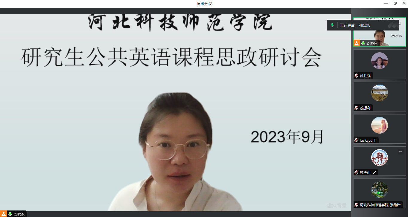 2023年9月8日bevictor韦德国际学科教学(英语)教学部组织硕士研究生公共英语(第一外国语)任课教师开展教学研讨活动,会议主题围绕研究生公共英语课程思政展开,研讨内容包括:针对教材的各个章节选出精讲主题和配套的练习,任课教师可以根据员工的具体专业情况灵活把握课程思政的切入点,可以利用超星学习通教学平台布置英语词汇、小组活动及主题作业等学习任务,并积极开展课程思政。