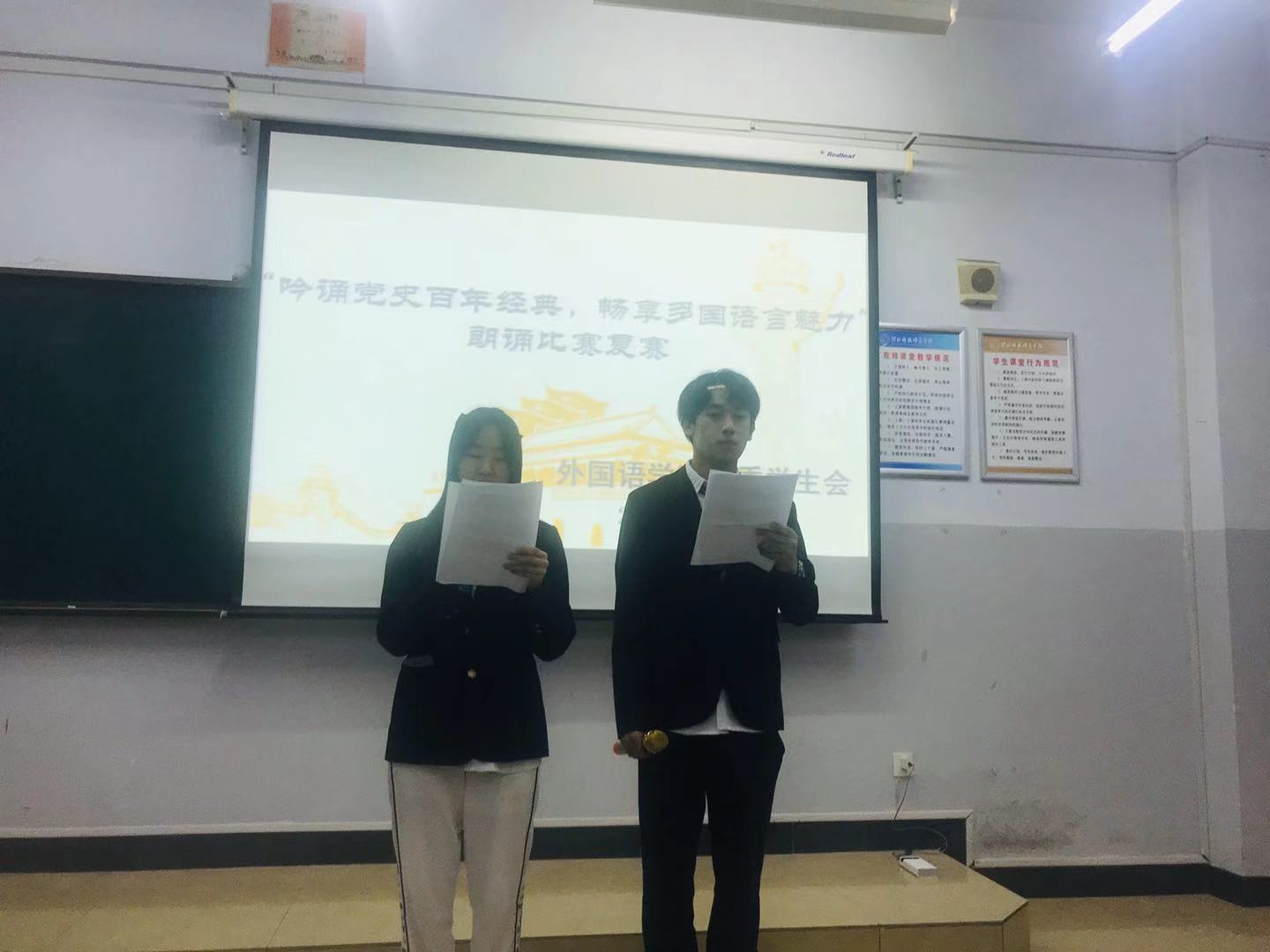 4月28日晚上6点半,bevictor韦德国际在406举办“吟诵党史百年经典,畅享多国语言魅力”外文朗诵大赛。进入决赛的20组选手用激昂高亢的声音、浓浓的爱党爱国之情,通过声声诵读传递党的“好声音”。本次比赛采取线下及线上抖音直播相结合的形式开展。公司党委书记、团委负责人、学工办副主任、各语种专业教师担任评委。