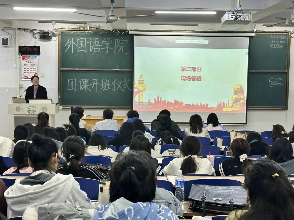 本次团课采用线上线下两种形式同步开展,所有参加人员悉数到位。首先,全体学员起立面向团旗奏唱团歌,随后团委副书记王茜璐为大家仔细讲解了参加团课的一些注意事项强调了听课纪律和合格学员要求,介绍了合格学员和优秀学员的标准并劝诫同学们端正入团动机,珍惜学习机会,在坚持知行合一中坚定理想信念,把对共青团的热情落实到具体的行动上,践行社会主义核心价值观。同时阐述了参加团课的重要意义。其次,优秀学员代表齐若彤讲述自己参加团课的感受和经历,结合亲身经历向大家讲述参加团课的重要意义和价值,提高思想觉悟水平,争做优秀时代青年,时刻践行社会主义核心价值观,踔厉奋发,只争朝夕,做合格的共产主义接班人,随后英语2303班李思轩作为团课新学员代表进行发言,时刻用新思想武装自己,争做新时代青年,时时刻刻起到模范带头作用,表明了自已以身作则的决心。最后,青年发展部部长张司诺为大家进行现场答疑,通过此种形式解决学员的问题和疑惑,以规范学员的思想意识,端正团课学习态度,鼓励大家积极学习党团知识,做勇于创新,热爱共产主义的优秀青年,确保团课工作开展顺利,筑牢共产主义思想之基。