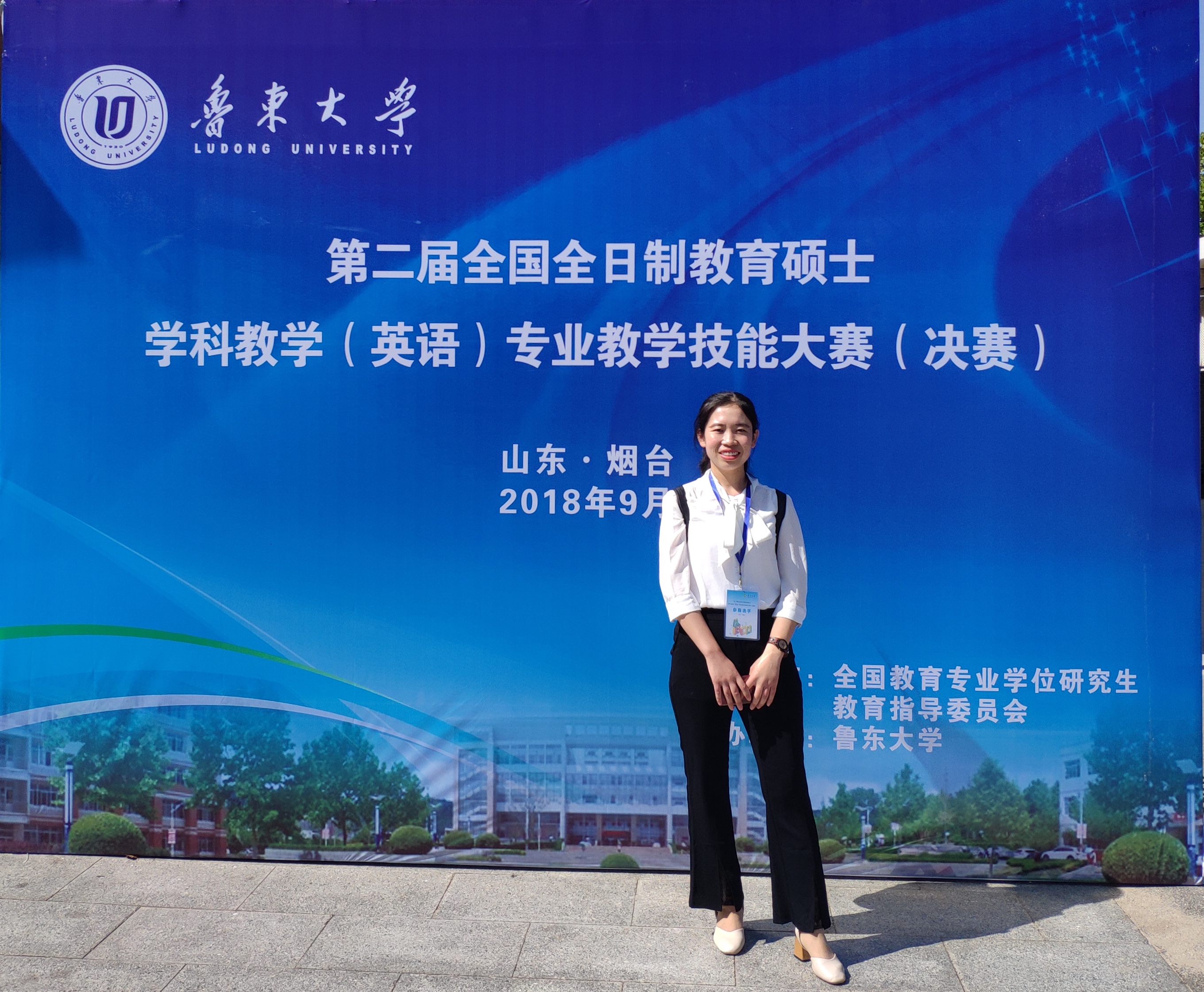 2018年9月21日至23日,第二届全国全日制教育硕士学科教学(英语)专业教学技能大赛(决赛)在鲁东大学拉开帷幕。公司bevictor韦德国际2017级学科教学(英语)专业研究生赵蔚蔚参加决赛,在模拟讲课和现场答辩两大环节中展示出了公司研究生良好的学科素质和精神风貌,并获得优秀教学设计奖。