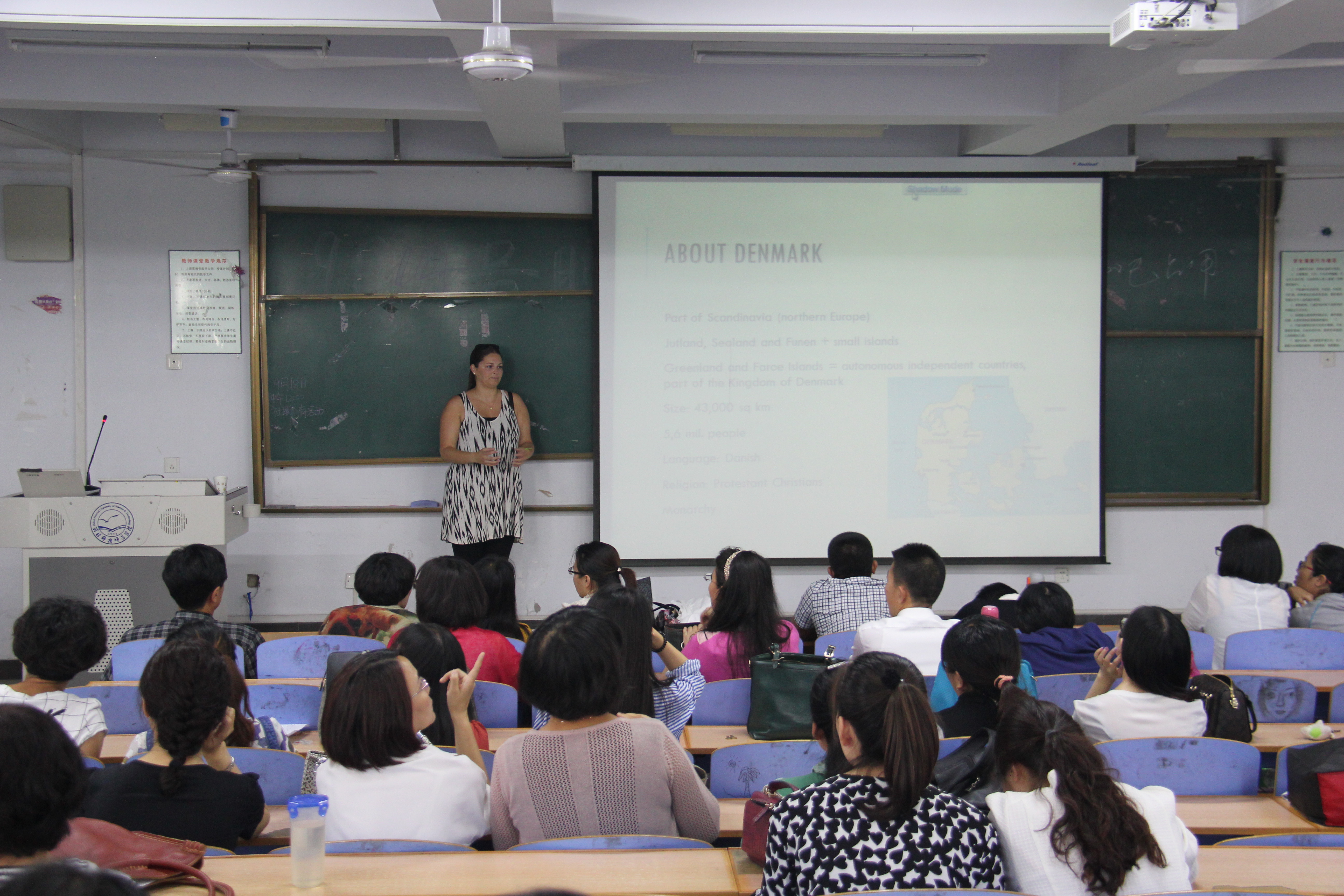 讲座从丹麦的地理地貌、皇室成员情况、丹麦语言特色、文化节日、商业构成和生活禁忌方面进行了详细的介绍,使在座的教师们对丹麦有了深入的了解,激发了大家对丹麦文化的浓厚兴趣。