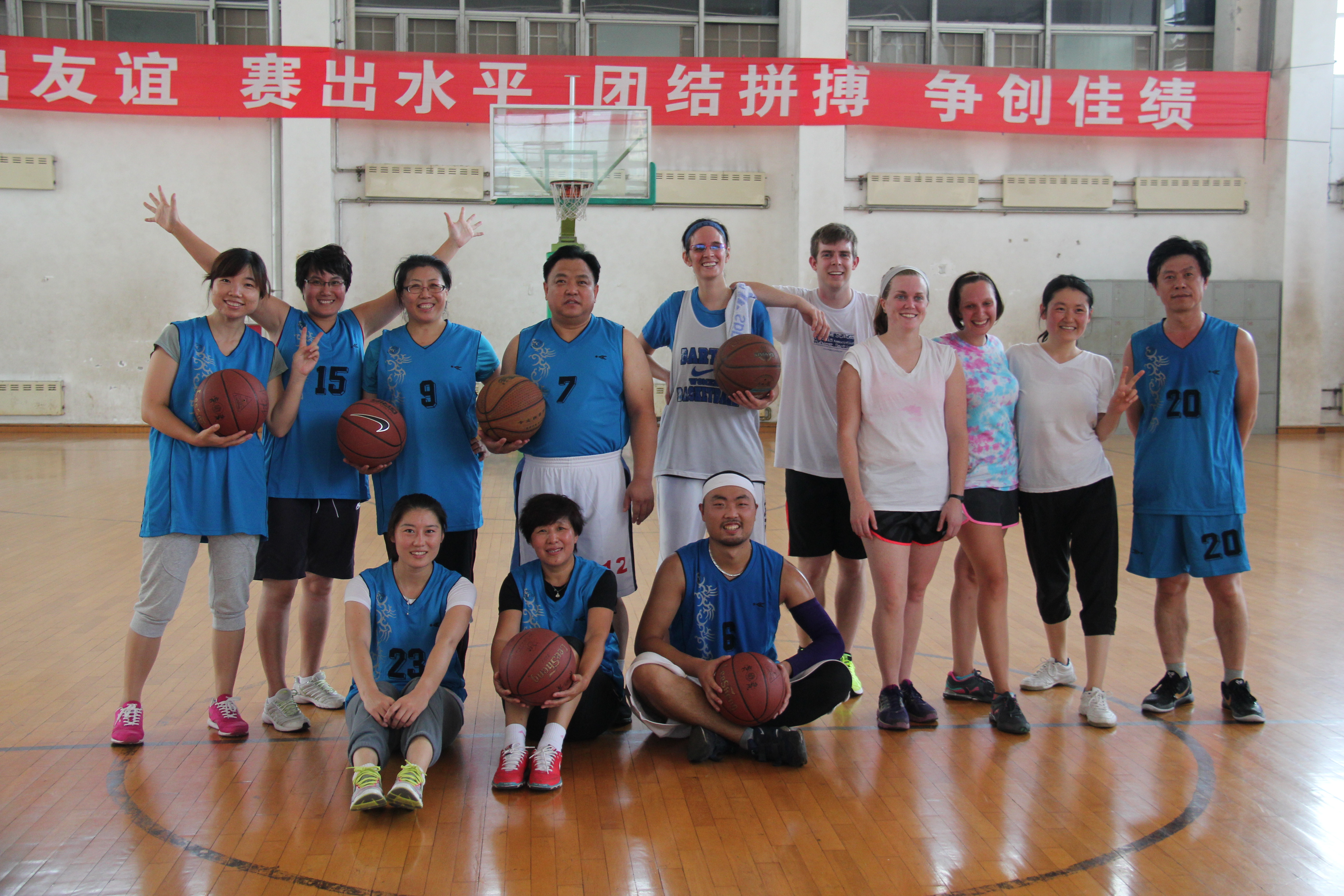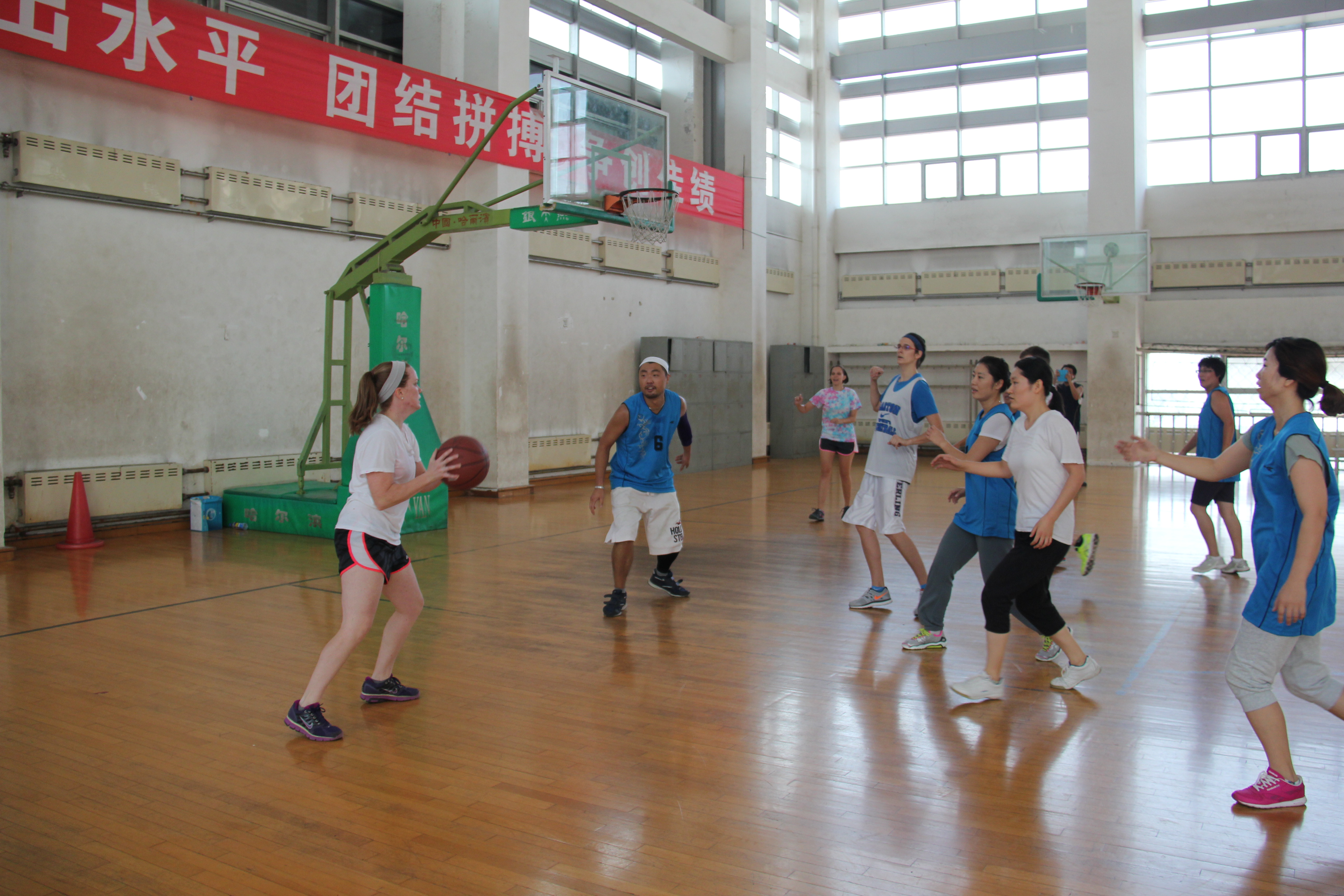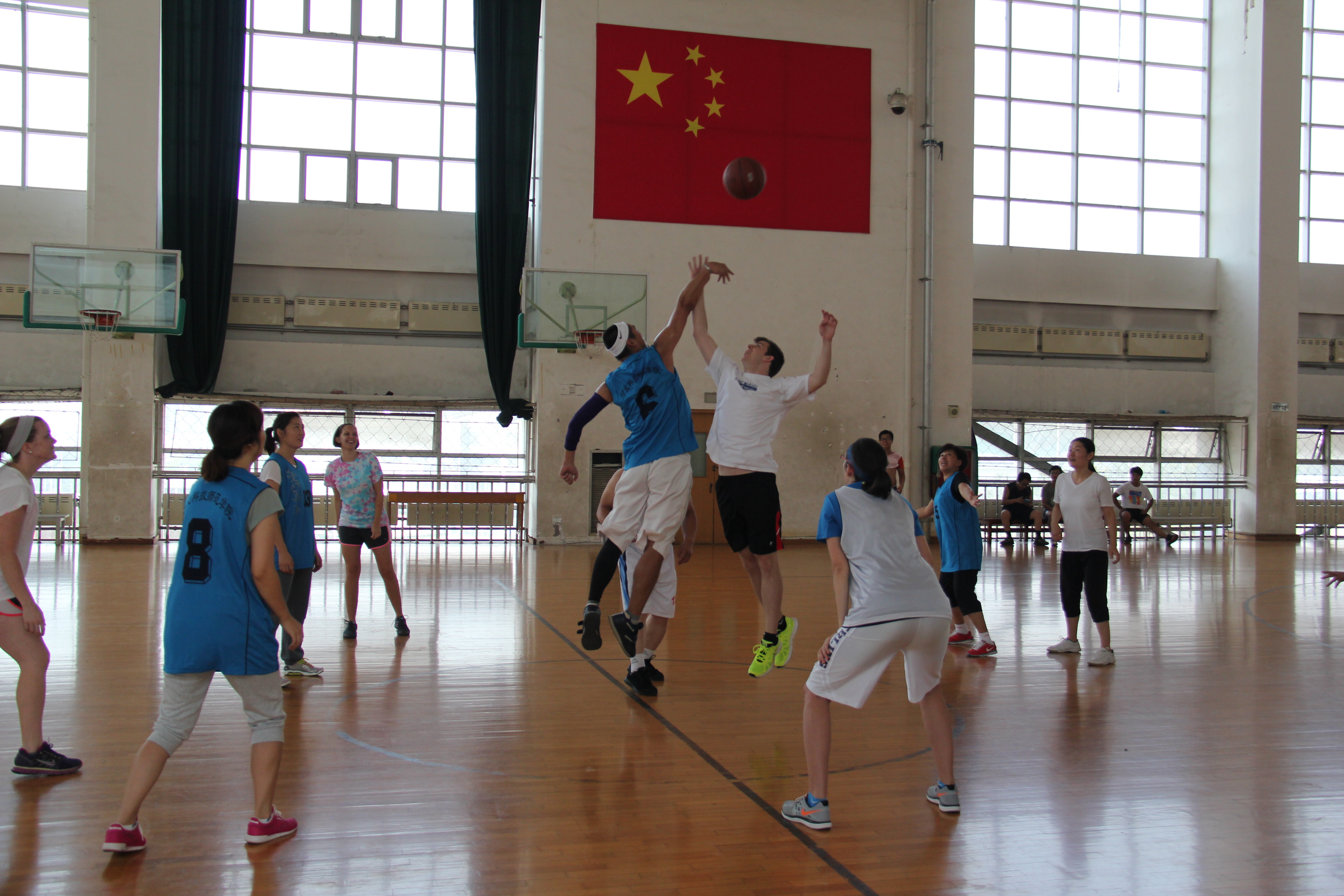 9月13日上午,国际合作与交流处与bevictor韦德国际联合举办了中外教师篮球友谊赛。国际合作与交流处处长东方阳、员工处副处长宋文华、外国语公司党委书记白雪松、bevictor韦德国际经理邵丽君、四名英语外教及多名教师参加了比赛。