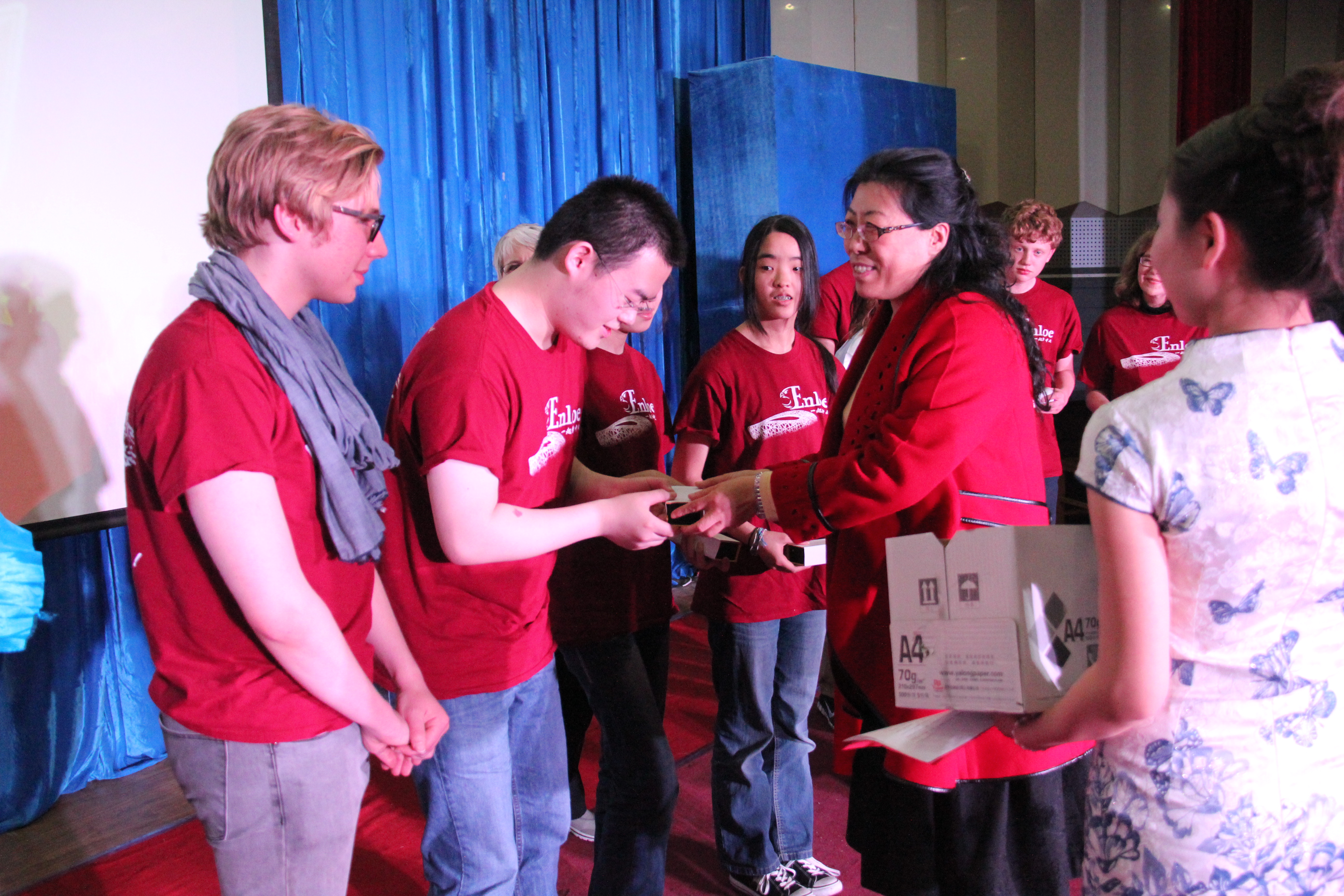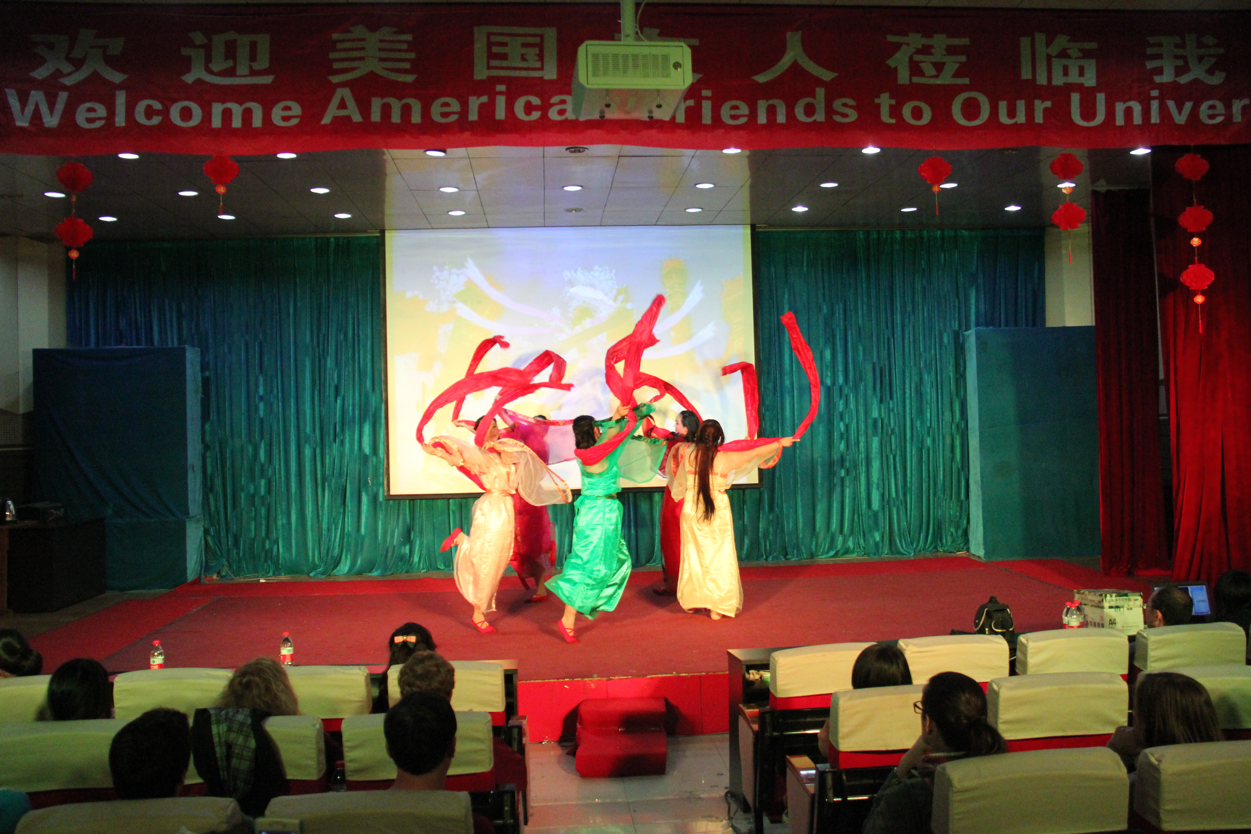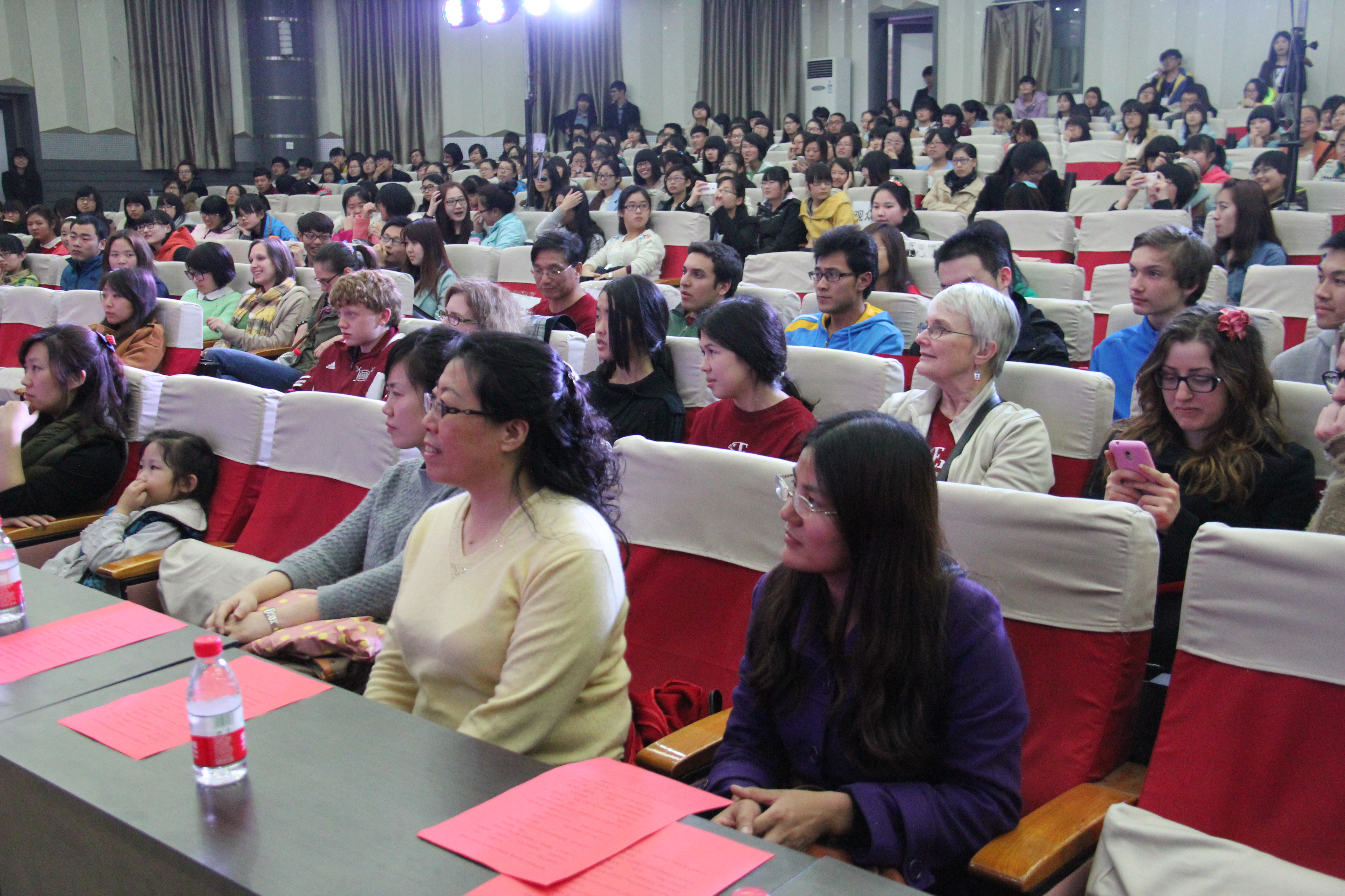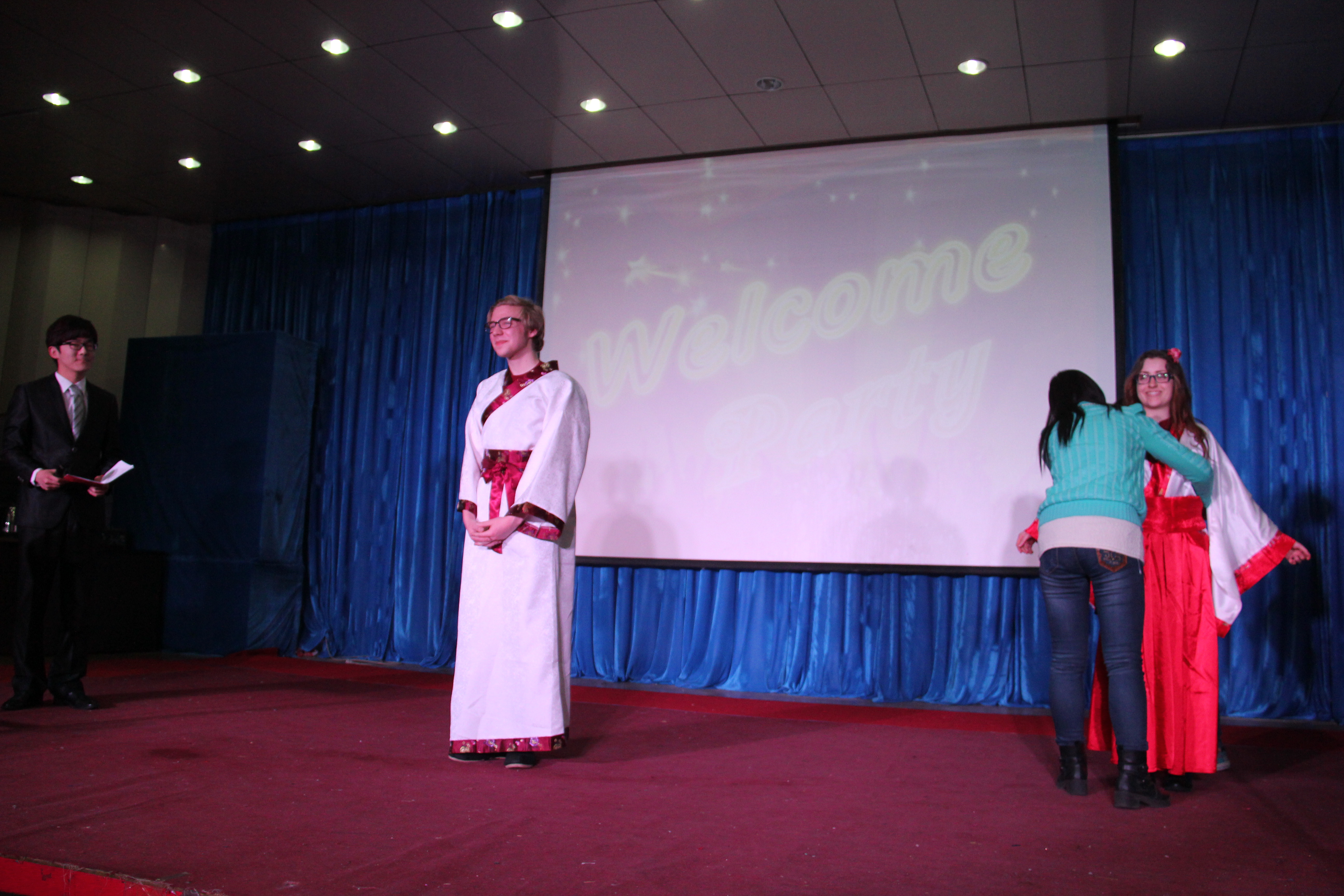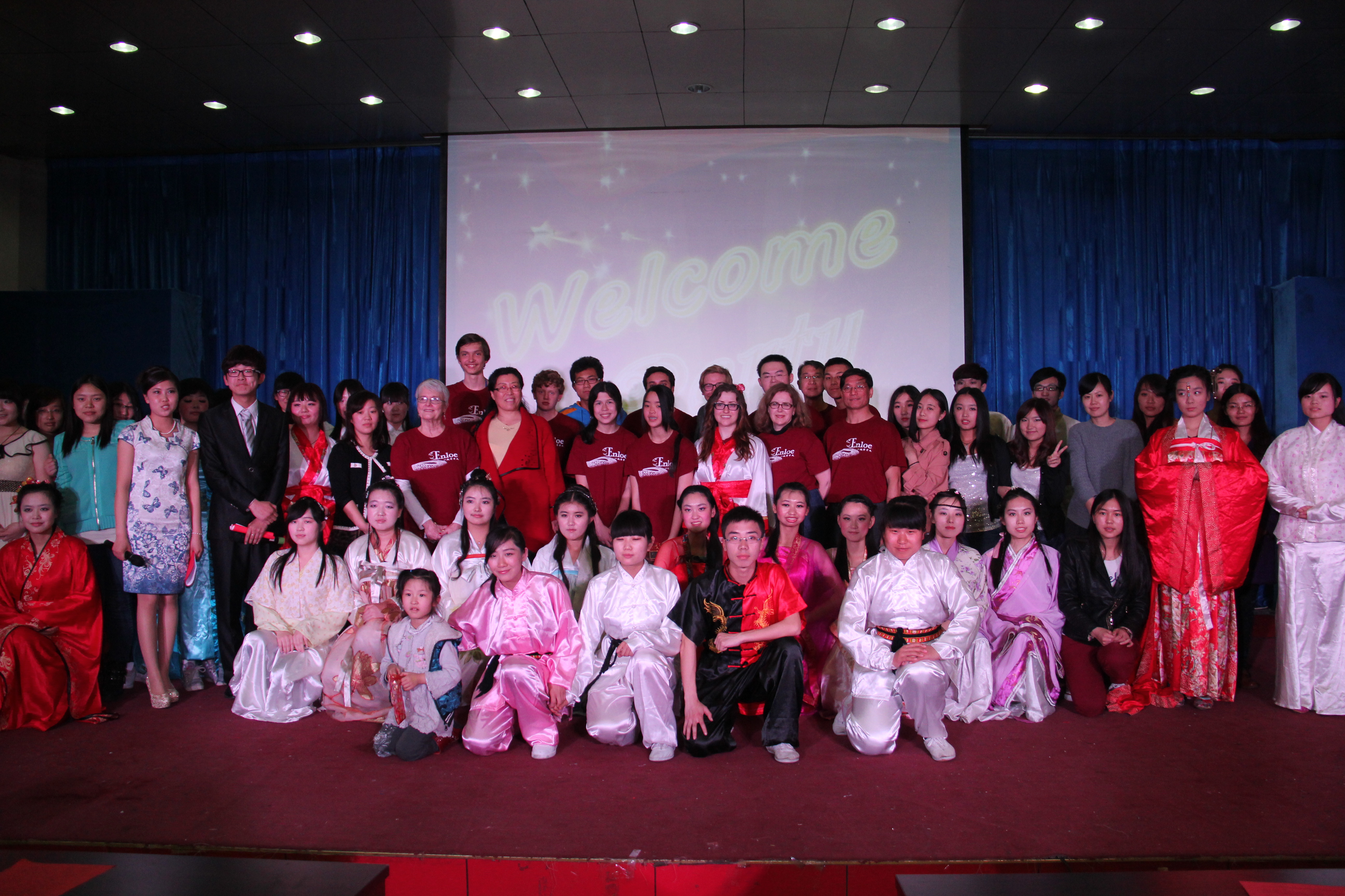 2014年3月28晚7点30分,bevictor韦德国际在综合楼学术报告厅举办了主题为“欢迎美国友人”的晚会。来自美国Enloe高中的14名师生、bevictor韦德国际经理邵丽君、国际交流处郁洋老师及bevictor韦德国际的同学们一起观看了本次晚会。