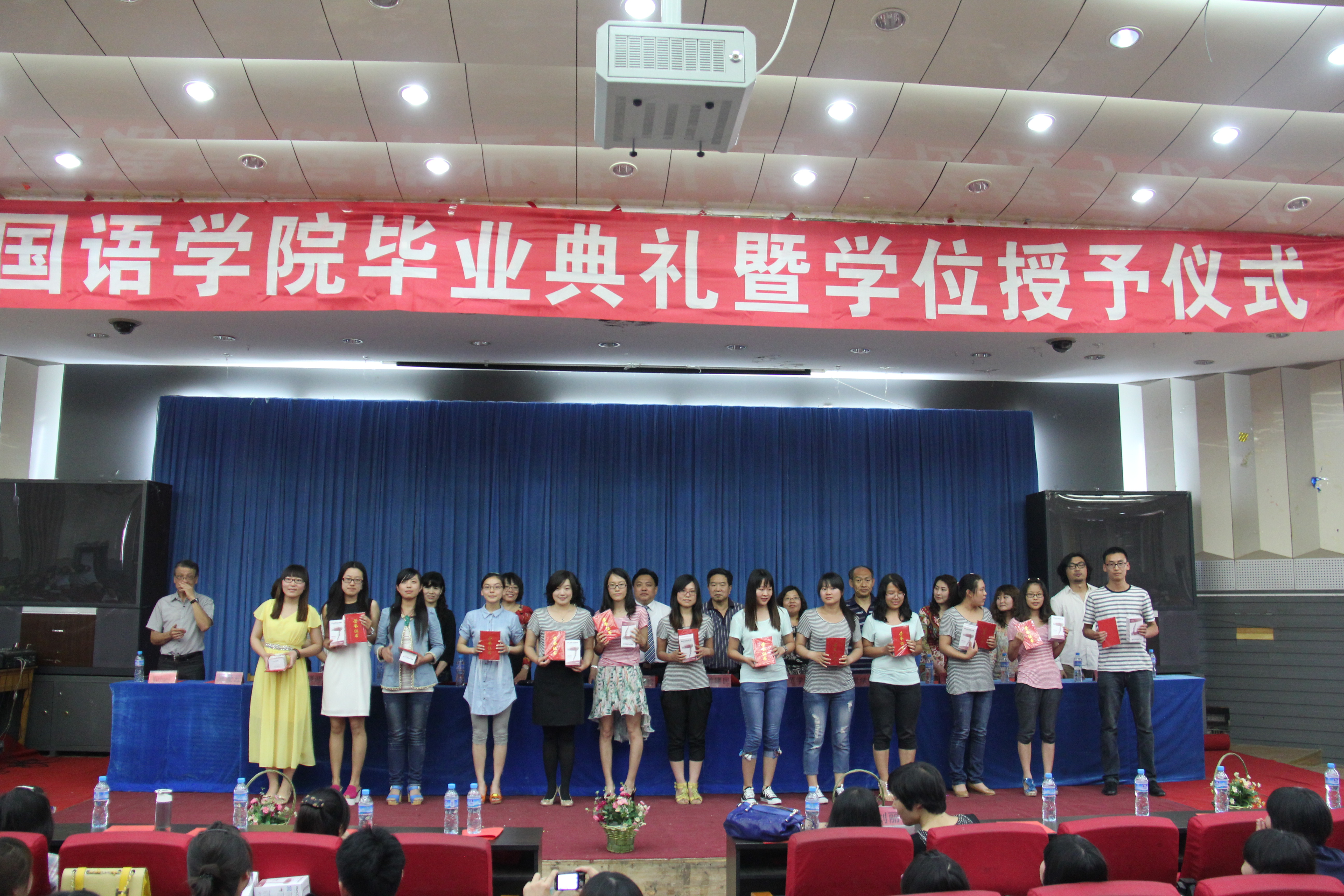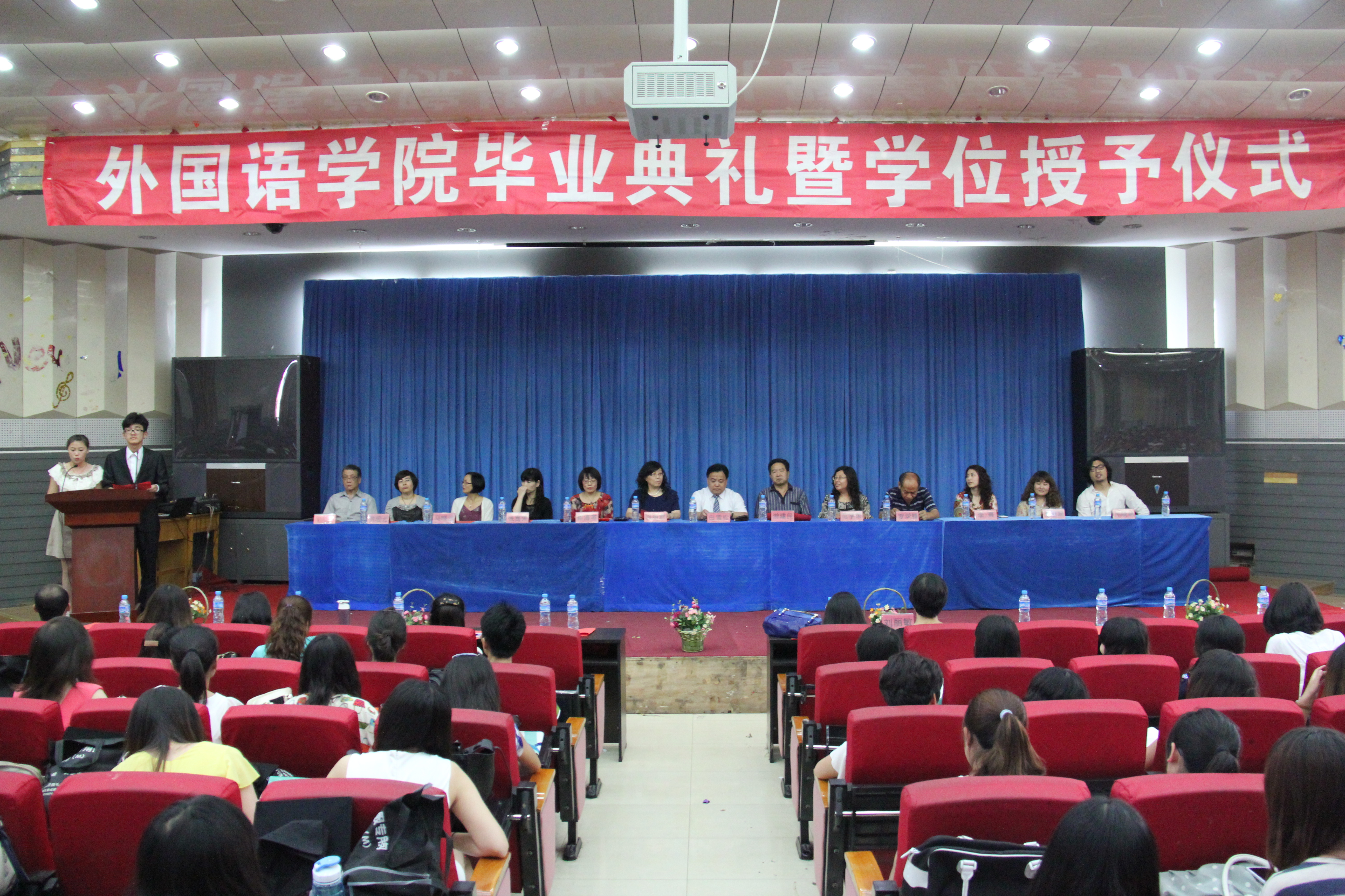 2013年6月19日下午,bevictor韦德国际2013届毕业典礼暨本科生学位授予仪式在开发区学术报告厅隆重举行。外国语公司党委书记白雪松、经理邵丽君、副经理游建民、副经理崔海英以及各教学部主任和全体老师出席大会。即将学成毕业的446名2013届毕业生们满怀激动心情齐聚一堂参加了隆重而庄严的毕业典礼。