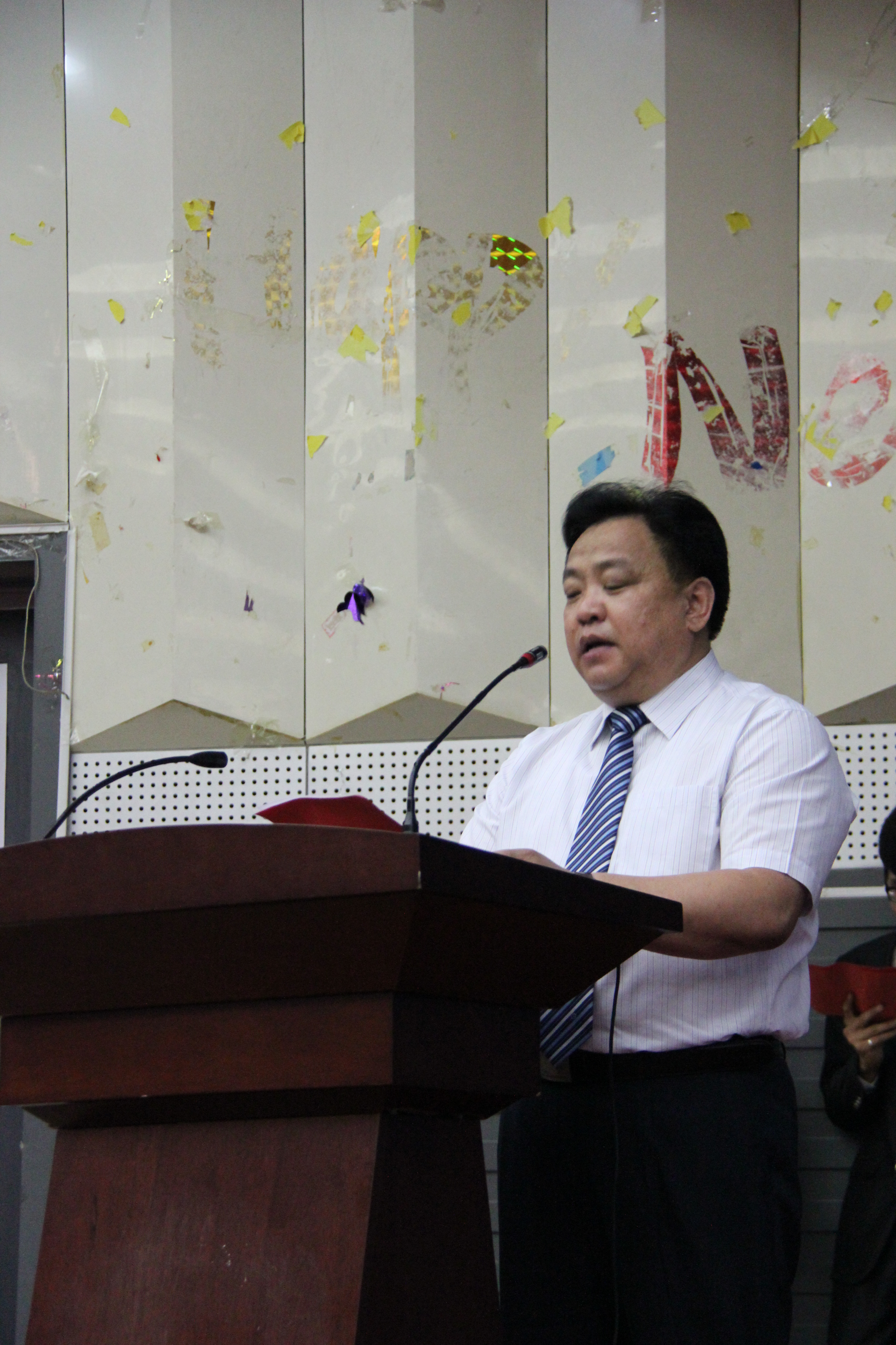典礼上,邵丽君经理致开幕词,介绍了2013届毕业生的基本情况,并对本届毕业生中考取研究生、参加西部计划以及专接本上线情况进行了简单介绍。旅游英语教学部主任罗学峰老师代表全院教师发言,鼓励大家学无止境,终身学习。2010级旅游英语专科专业员工吴立川同学和2011级英语本科专业郝小乐同学分别代表全体毕业生和在校生发言;之后,白雪松书记在典礼上作了激情洋溢的讲话。他充分肯定了毕业生们为公司发展所作的成绩,对即将毕业的同学们提出了殷切的希望和衷心的祝福。