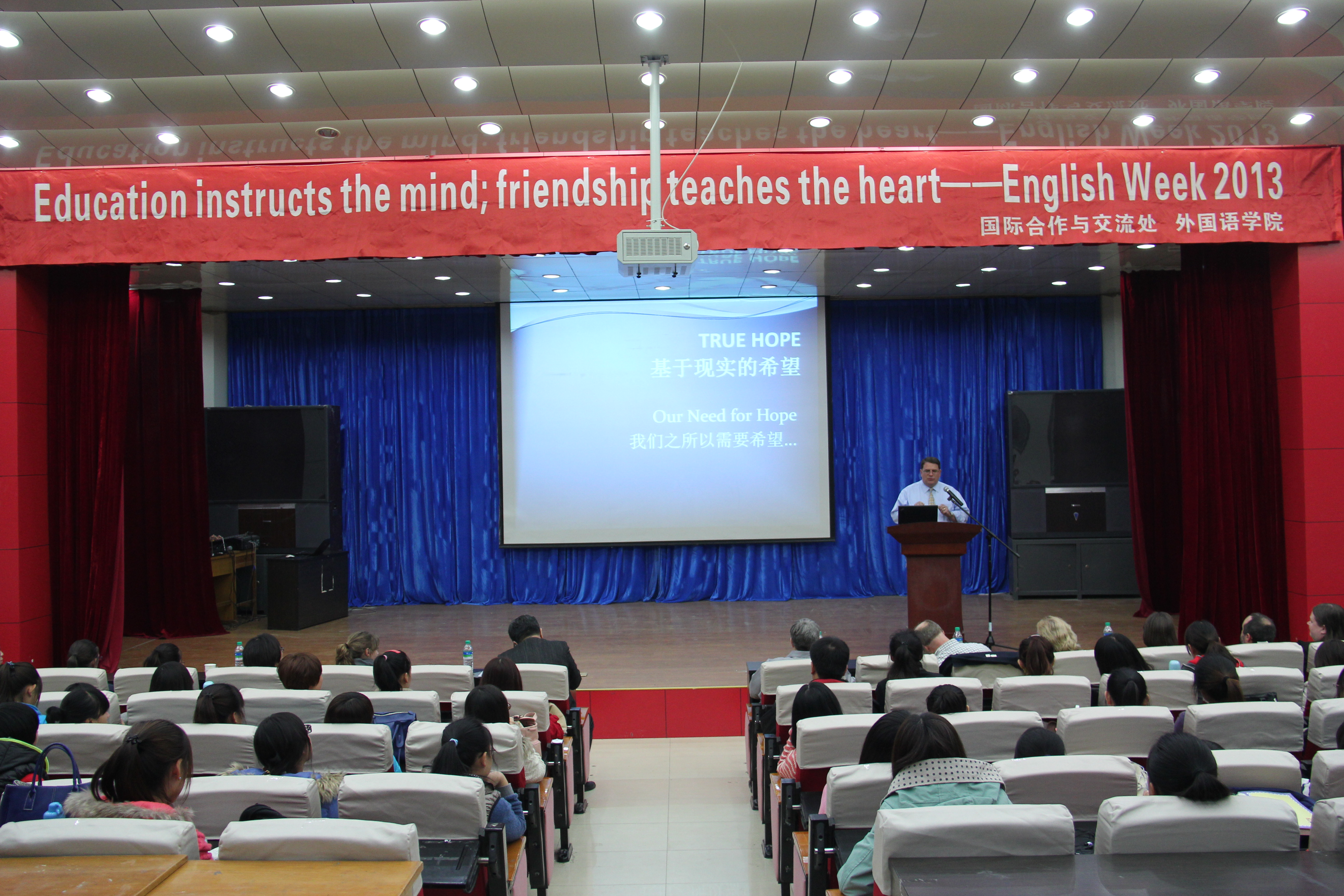 2013年10月25日晚,由公司国际合作与交流处主办,bevictor韦德国际承办的“启梦科师2013”系列活动之英语周在开发区校区学术报告厅闭幕。国际合作与交流处、bevictor韦德国际相关领导及师生400余人参加了闭幕式。