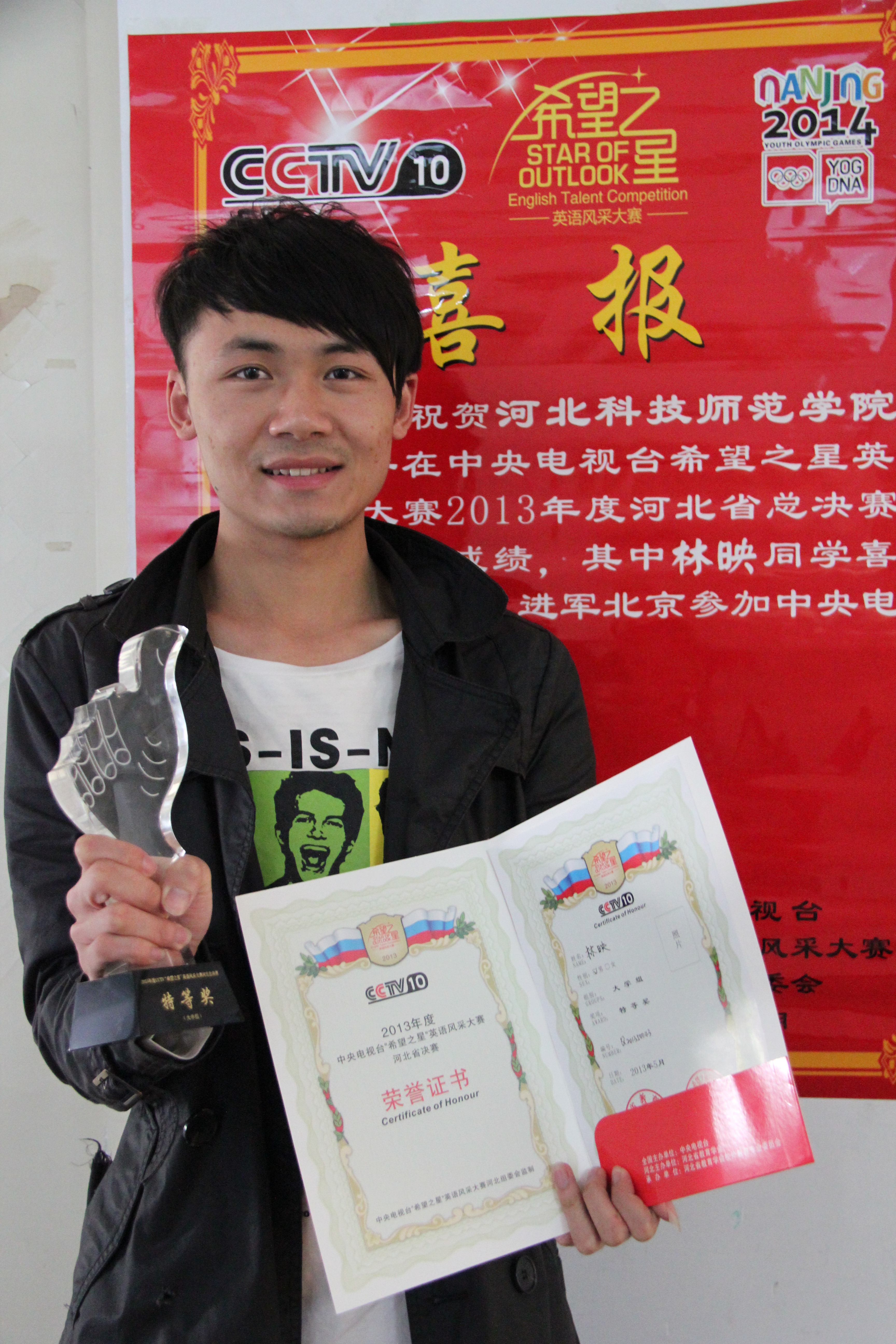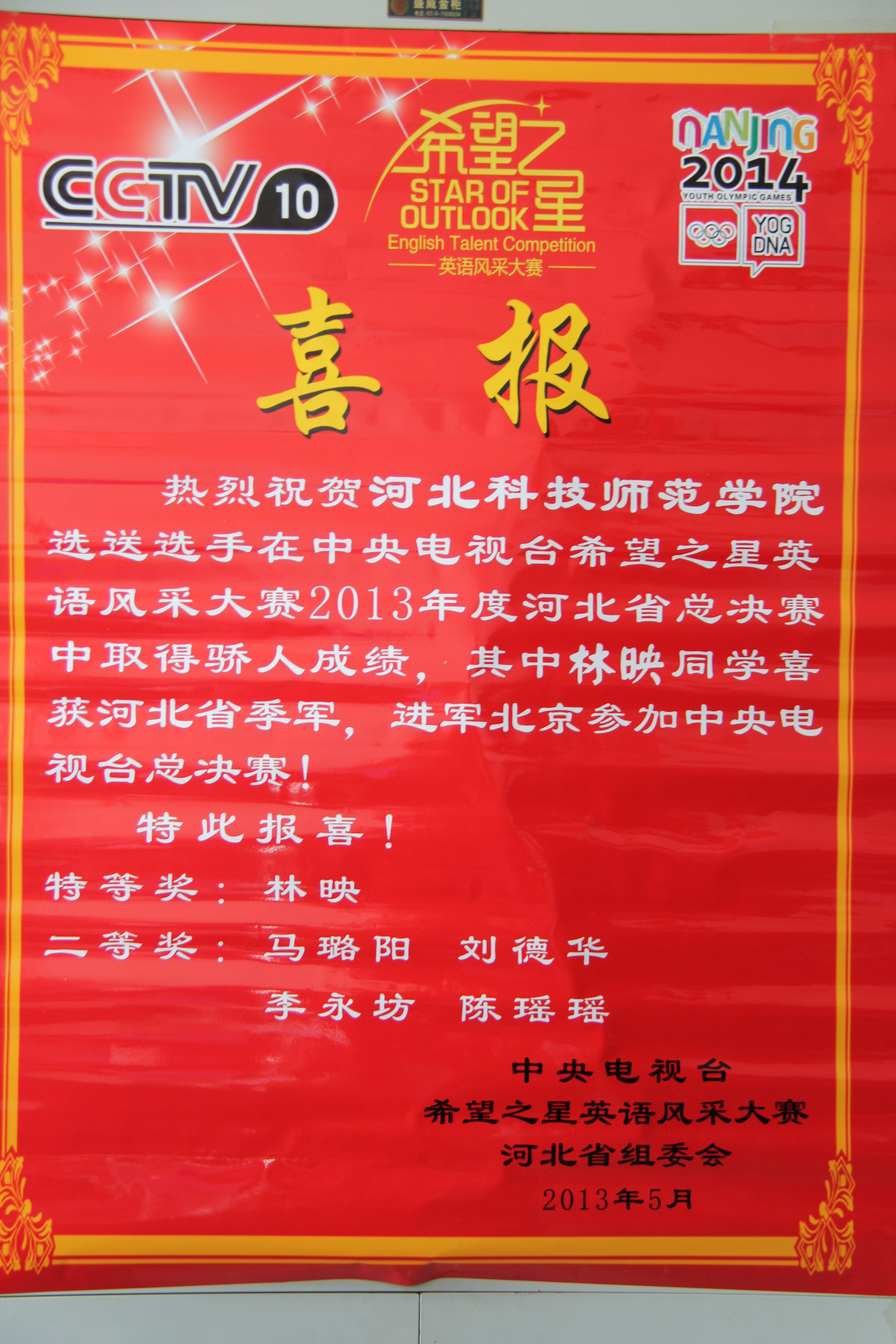 公司选手在河北省希望之星英语风采大赛总决赛中表现优异,其中bevictor韦德国际员工林映获得河北省季军,将进军北京中央电视台参加总决赛。另有马璐阳、刘德华、李永坊、陈瑶瑶四名同学获得二等奖。