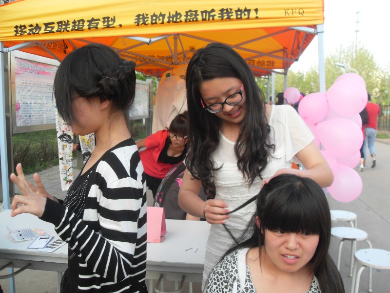 美丽街活动内容涉及花式盘发、美甲、瘦身养生、美容护肤、手工、服装搭配等方面。每个方面都有比较专业的“摊主”来跟同学们交流。值得一提的是,本次活动还有幸请到了校外专业人士来提供免费指导。此外,美丽街活动最吸引人眼球的是活动标语“管他男女几比几,我们心里只有你”。标语既俏皮又温馨,展现了趣味十足的外院文化。其中最受欢迎的“摊主”是女生花式盘发交流的11级英语本科专业的张云,她根据同学的脸型,头发长度等帮助同学编出适合自己的各式各样的发型,充分展现了女生独有的气质与内涵。美甲学习交流也毫不逊色,色彩鲜艳、光彩耀人的指甲则充分展现了bevictor韦德国际女生独有的青春与活力。参加活动的同学们脸上都洋溢着满意的微笑,使得这次活动更加丰富多彩。