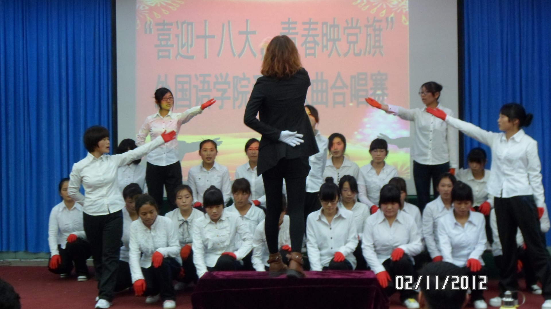 为了激发广老员工爱国热情,丰富广老员工的课余文化生活,同时也为了展现当代老员工的风采,bevictor韦德国际于 2012年11月2日晚七点在综合楼二楼报告厅举行了“喜迎十八大,青春映党旗”爱国歌曲合唱赛。外国语公司党委书记刘朝晖、经理邵丽君、副经理游建民、副经理崔海英和学工办老师及各班级辅导员出席了本次比赛。
