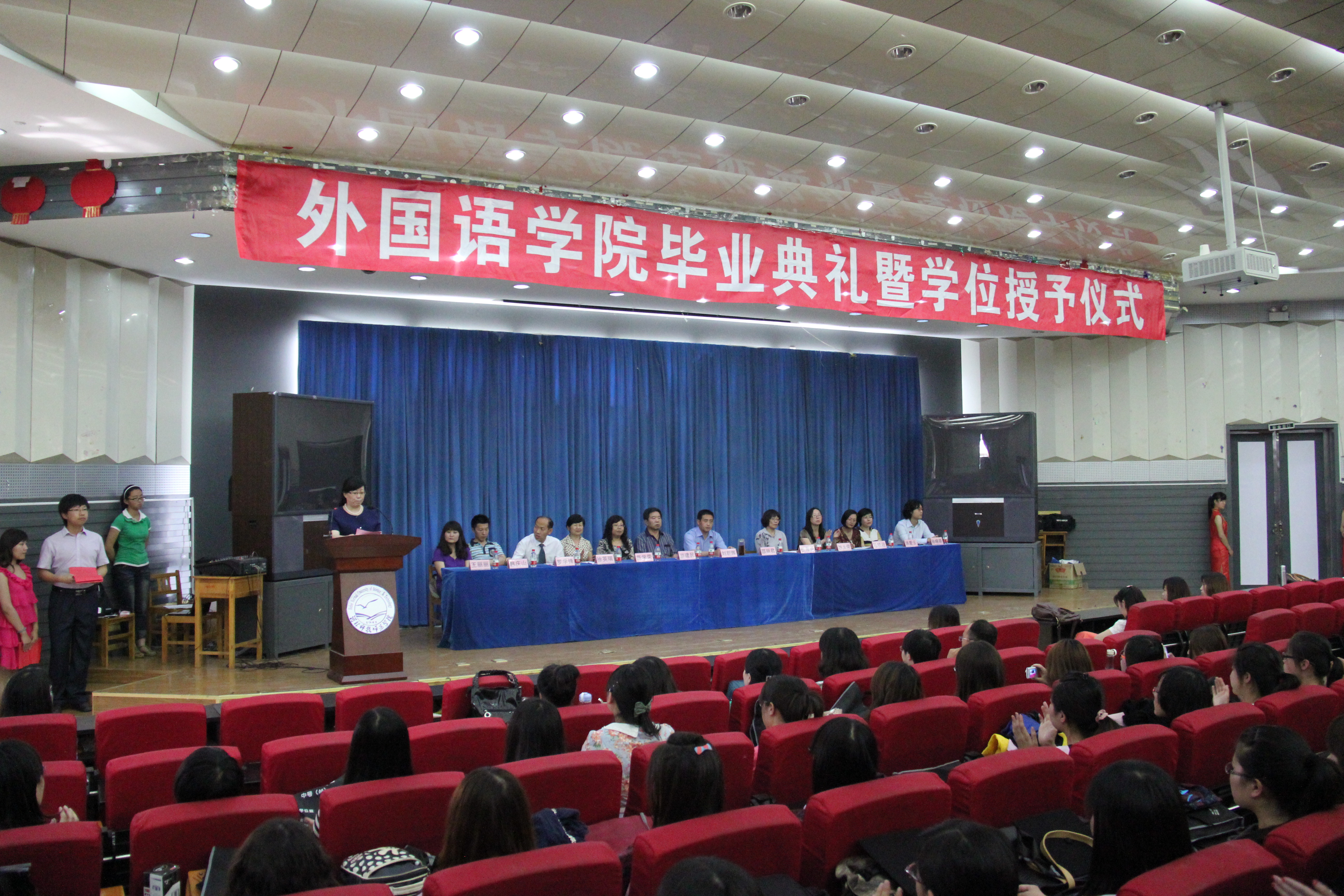 2012年6月12日下午,bevictor韦德国际2012届员工毕业典礼暨本科生学位授予仪式在开发区学术报告厅隆重举行。外国语公司党委书记刘朝晖,经理邵丽君,副经理游建民、副经理崔海英以及各教学部主任和全体老师出席大会。即将学成毕业的354名2012届毕业生们满怀激动心情齐聚一堂参加了隆重而庄严的毕业典礼。