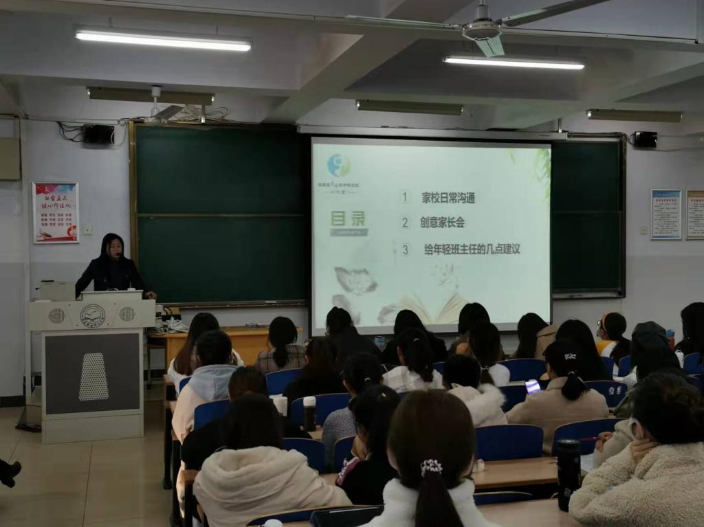 首先,崔经理向全体师生隆重介绍了主讲人肖婧老师。接着,肖婧老师从家校日常沟通、创意家长会、给年轻班主任的几点建议三个方面详细讲解了作为一名班主任在家校沟通中的重要作用、主要职责和沟通技巧,肖婧老师用自己在20多年班主任工作中的真实案例,向同学们生动展示了与员工家长面对面沟通、线上沟通和电话沟通的技巧,策划和组织各类创意家长会的方法和流程,并给在座的2018级即将走上教学岗位的毕业生提出了中肯的建议,肖婧老师用自己幽默的表达、恳切的言辞、饱满的激情感染了在座的每一位员工,会场中欢笑声和掌声此起彼伏,讲座进行到最后,崔经理对本次讲座进行了提纲挈领的总结,全体师生用热烈的掌声感谢肖婧老师的经验分享。