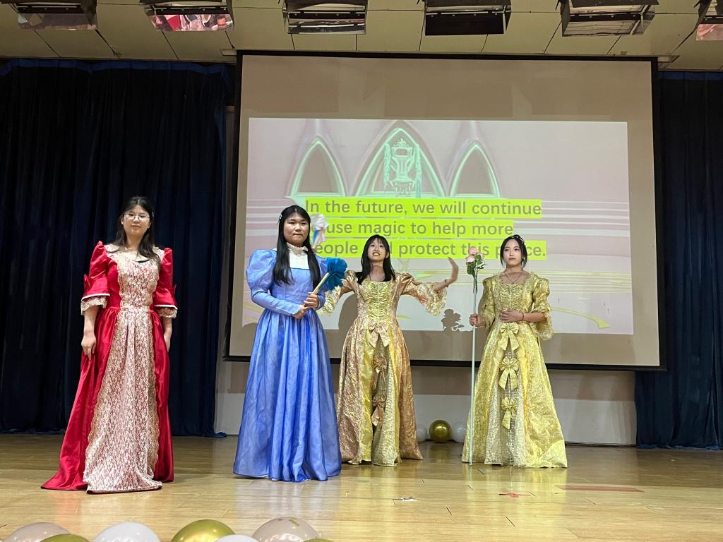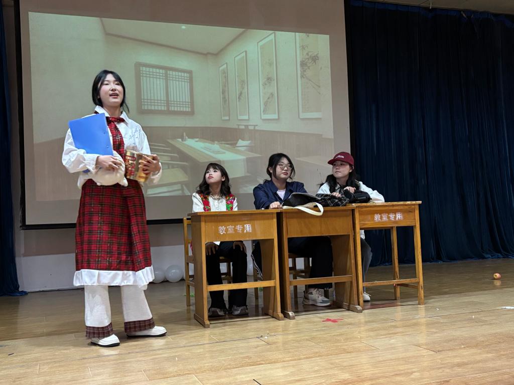 戏剧节现场精彩纷呈。英语作品率先登场,《家有儿女》以幽默诙谐的方式展现家庭趣事,演员们地道的英语发音和生动演绎,引得观众笑声连连;《巴啦啦小魔仙》将奇幻魔法世界搬上舞台,演员们充满活力的表演,让经典角色重现生机;《茶馆》则以独特视角,用英语诠释老北京的社会风貌,传递出深厚的文化底蕴;西班牙语作品《哪吒》,演员们用西班牙语讲述东方神话故事,中西文化的碰撞别具一格。意大利语作品《花木兰》,演员们以标准的发音和饱满的情感,演绎花木兰替父从军的传奇,展现出别样的巾帼风采。《夜莺与玫瑰》《小马宝莉之彩虹摇滚》《不差钱》《麦琪的礼物》等作品,也分别从不同角度为观众带来视听盛宴。